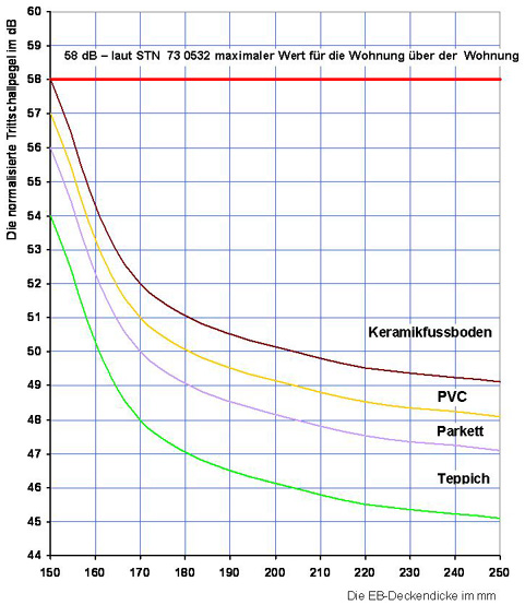 Das Diagramm ist hauptsächlich für Projektanten und Bauingenieure bestimmt und sollte die Orientierung im Problematik der Fußbodenakustik erleichtern.