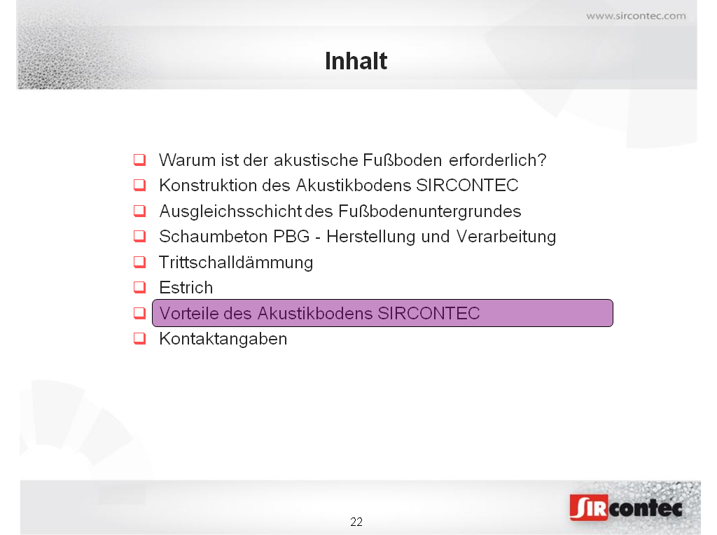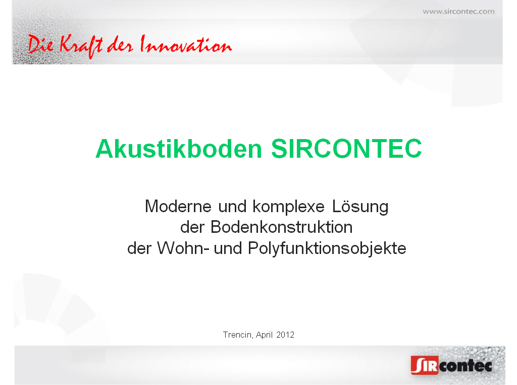 Entwicklung der Eigenschaften von LB SIRCONTEC als auch der SIRCONTEC Konstruktionen geht stetig voran. Diesen Vorschritt ist in den aktualisierten D ...