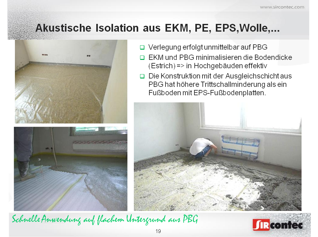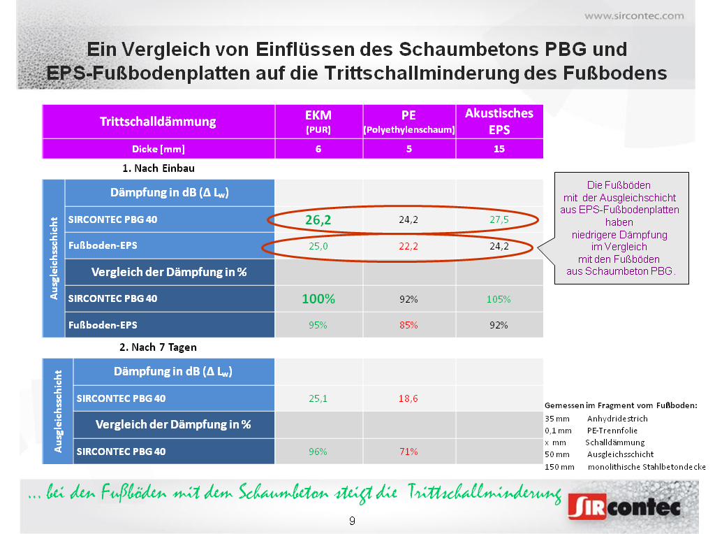 Die Gesellschaft SIRCONTEC hat die Vergleichsmessung der neuen auf PUR-Basis akustischen Isolation mit dem Handelsnamen EKM 1006 und EKM 1009&nbs ...