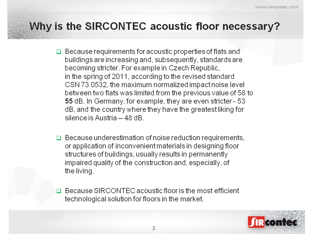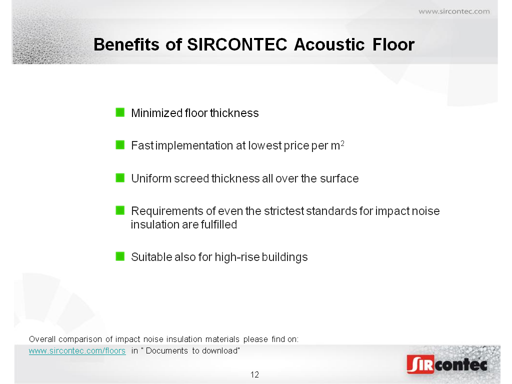 SIRCONTEC has finished comparison testing in accredited test lab and thus completed development of a new acoustic pad made on the basis of PUR with tr ...