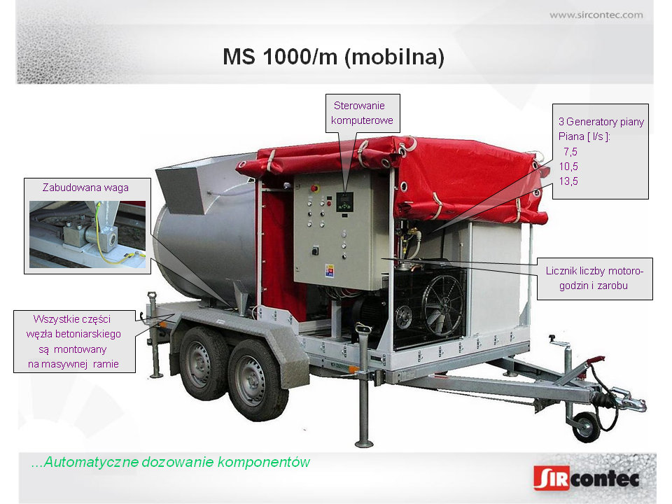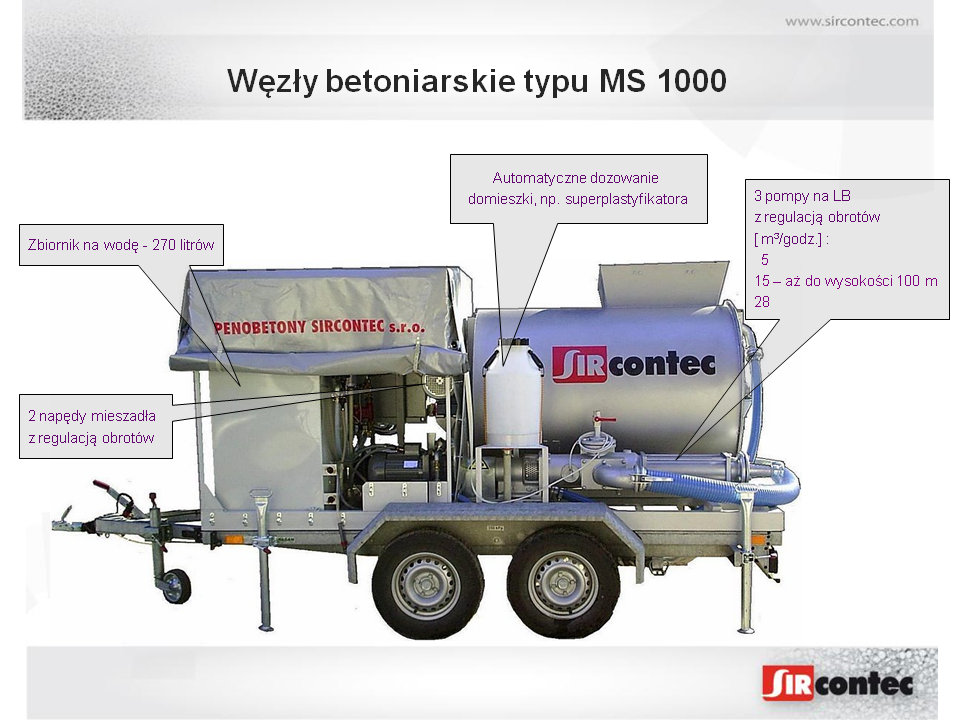 SIRCONTEC wytworzył i ciągle rozwija liczne konstrukcji budowlane oraz materiały wraz z technologią do ich wykonania. Dla ich niezawodnej realizacji skonstruowaliśmy automatyczne urządzenia do produkcji i transportu betonów lekkich (LB) – MS 1000 i MS 1000_S.