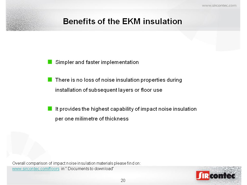 EKM - the most efficient impact noise insulation. Growing demands on impact noise insulation of floors, while at the same time, minim ...